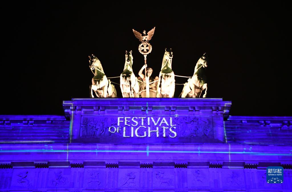 10月6日,德國柏林勃蘭登堡門(mén)被燈光點(diǎn)亮。