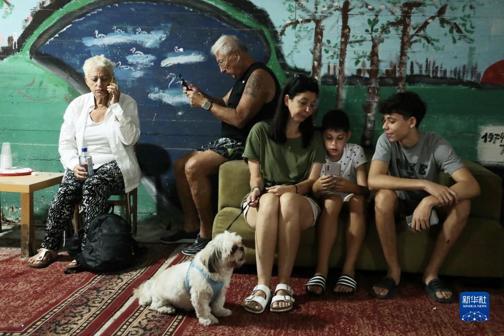 10月7日,防空警報響起后民眾在以色列特拉維夫一處建筑內躲避。