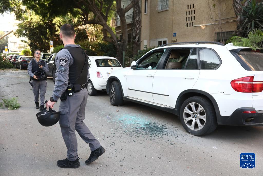 這是10月7日在以色列特拉維夫拍攝的一輛遭火箭彈破壞的車(chē)輛。
