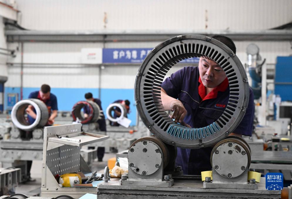 10月7日,工人在石家莊裝備制造產(chǎn)業(yè)園河北電機公司電機車(chē)間進(jìn)行嵌線(xiàn)作業(yè)。