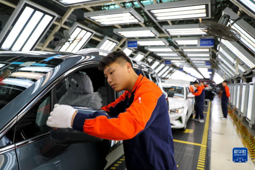 10月7日,工人在貴州省貴陽(yáng)市觀(guān)山湖區一家汽車(chē)制造企業(yè)的車(chē)間內工作。
