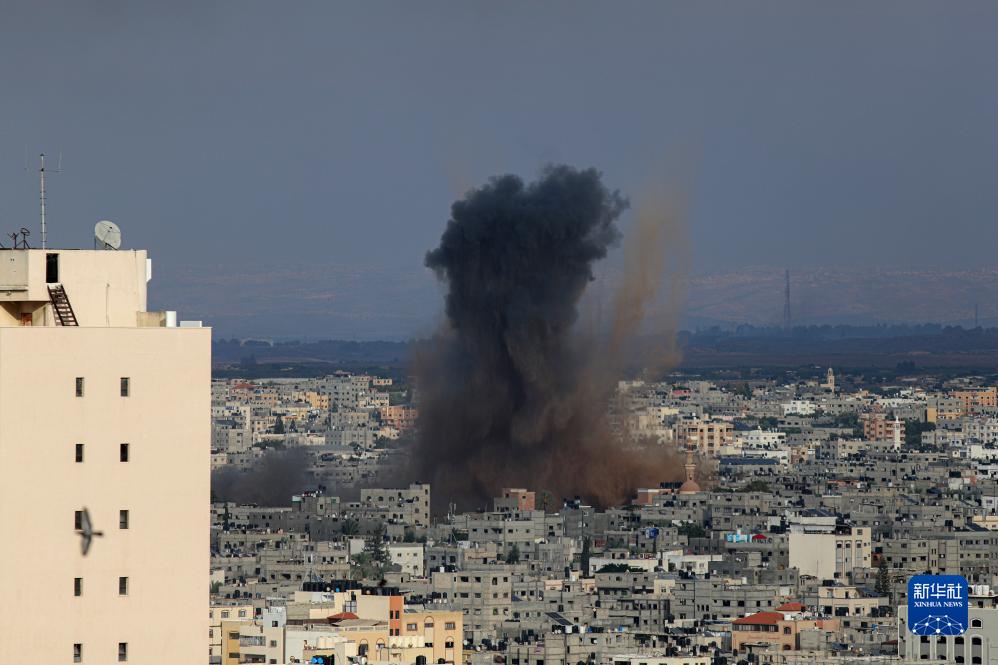 這是10月7日在加沙城拍攝的以色列軍隊空襲地面建筑造成的濃煙。