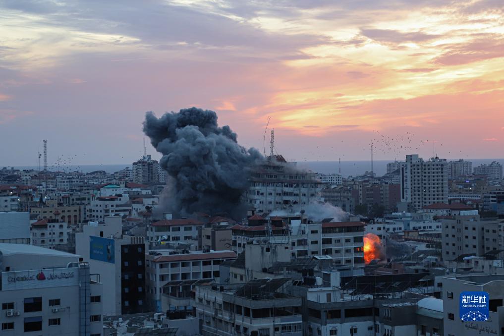 這是10月7日在加沙城拍攝的以色列軍隊空襲地面建筑造成的濃煙。