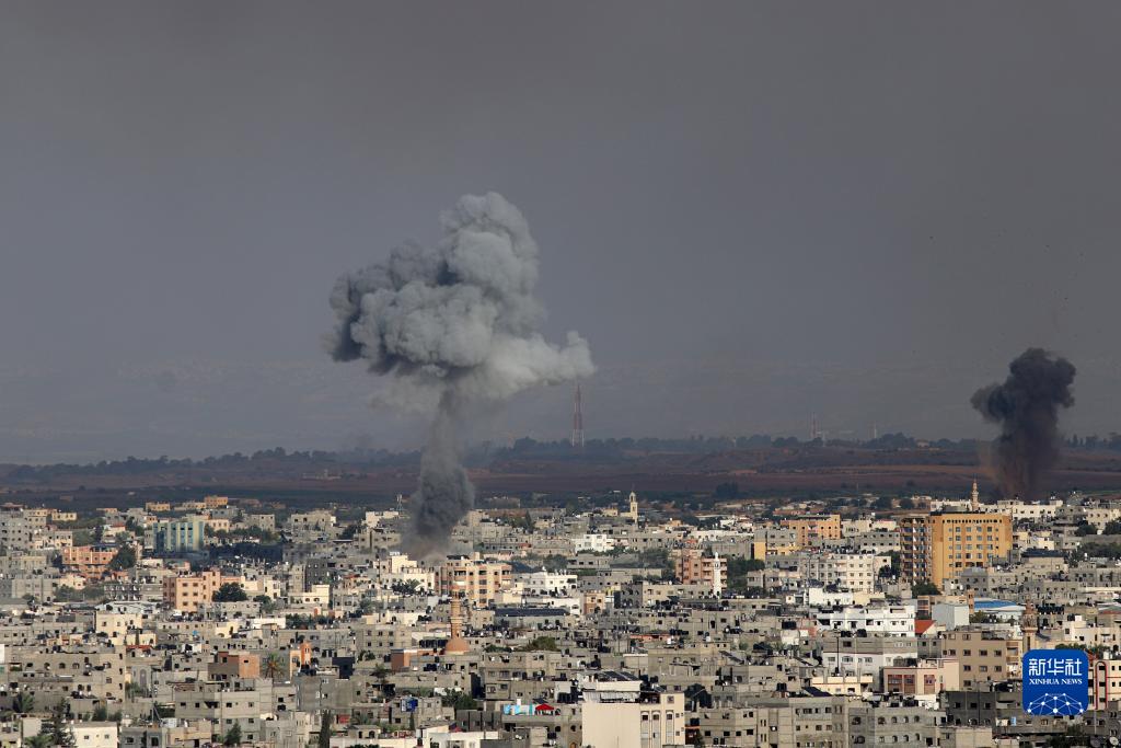這是10月7日在加沙城拍攝的以色列軍隊空襲地面建筑造成的濃煙。