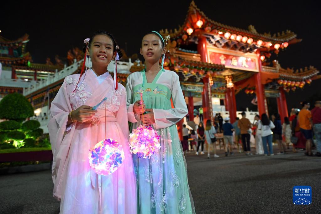 9月29日,在馬來(lái)西亞吉隆坡,人們提著(zhù)花燈慶祝中秋節。