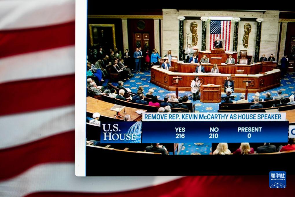 這是10月3日拍攝的美國華盛頓國會(huì )眾議院投票罷免共和黨籍眾議長(cháng)麥卡錫的直播畫(huà)面。