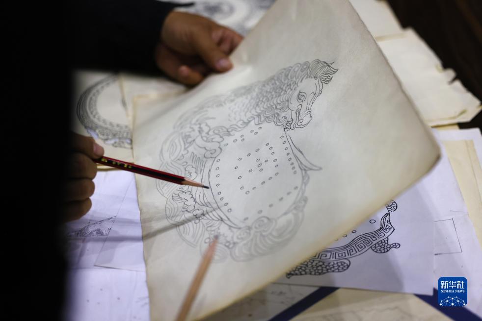 10月7日,游曉曉在工作室內繪制草稿。
