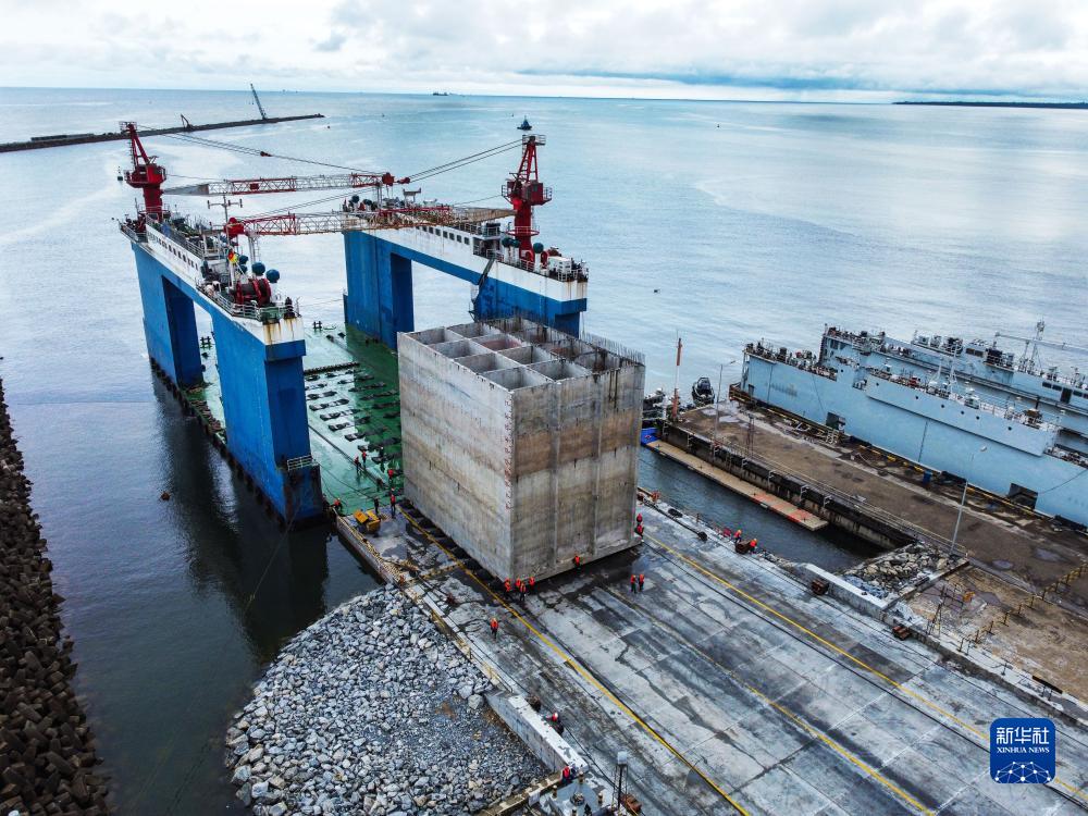 這是2022年10月22日在喀麥隆克里比拍攝的等待出運安裝的沉箱(無(wú)人機照片)。
