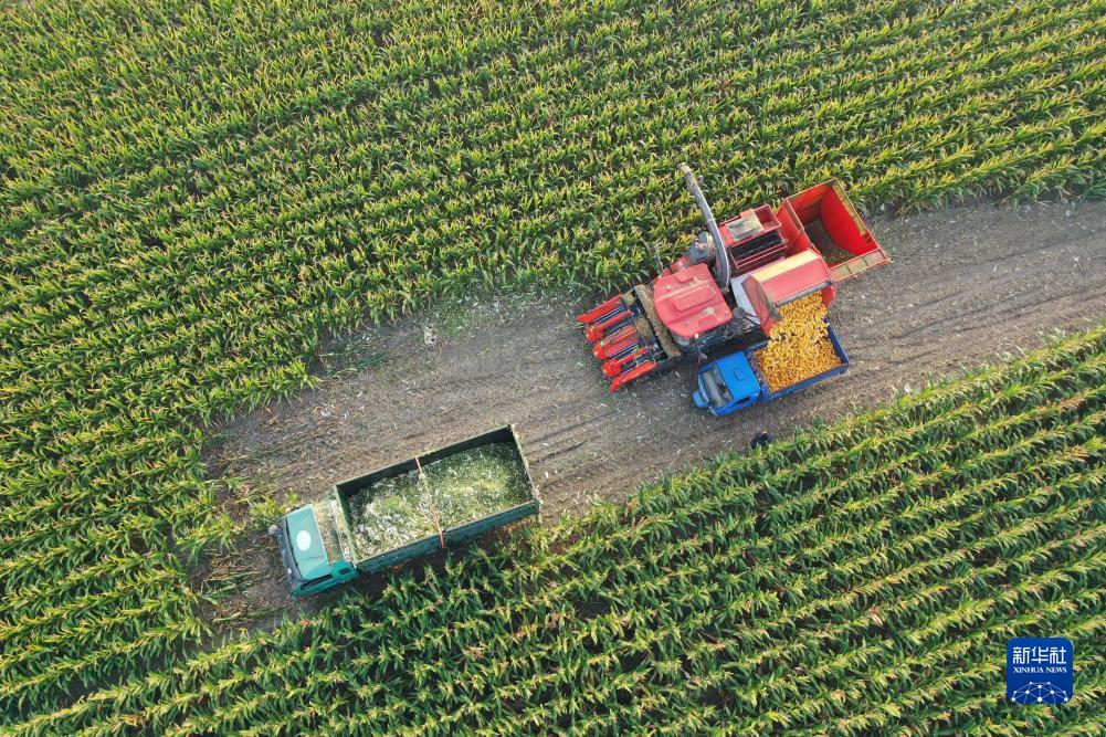 寒露時(shí)節,俯瞰金秋田野大地,到處是一派繁忙景象。