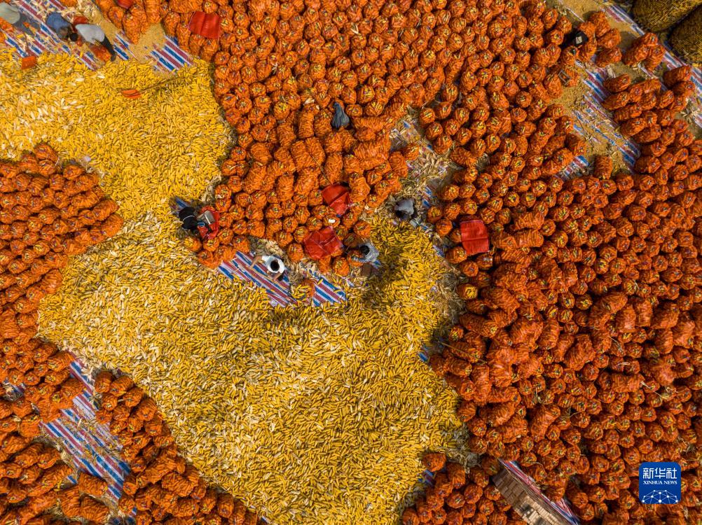 寒露時(shí)節,俯瞰金秋田野大地,到處是一派繁忙景象。