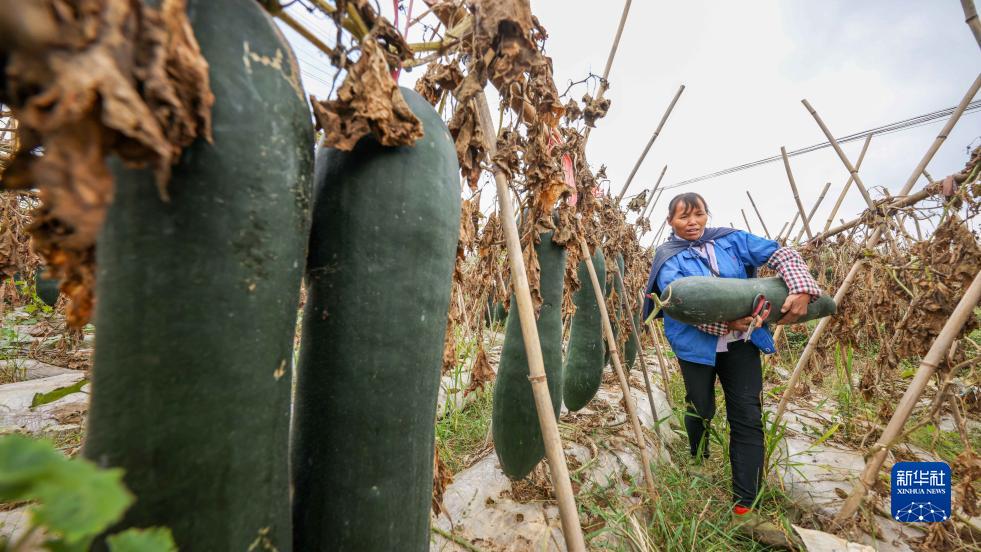 10月8日,農民在玉屏侗族自治縣田坪鎮長(cháng)嶺村采收冬瓜。
