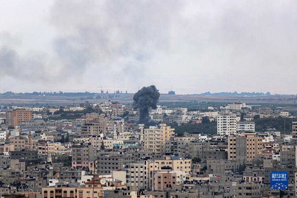 這是10月8日在加沙城拍攝的以色列空襲后的濃煙。
