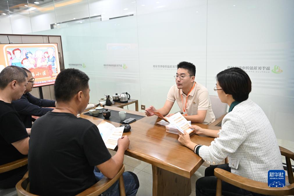 10月8日,石家莊新華區筑盈創(chuàng )業(yè)孵化基地一個(gè)團隊的創(chuàng )業(yè)者在交流。