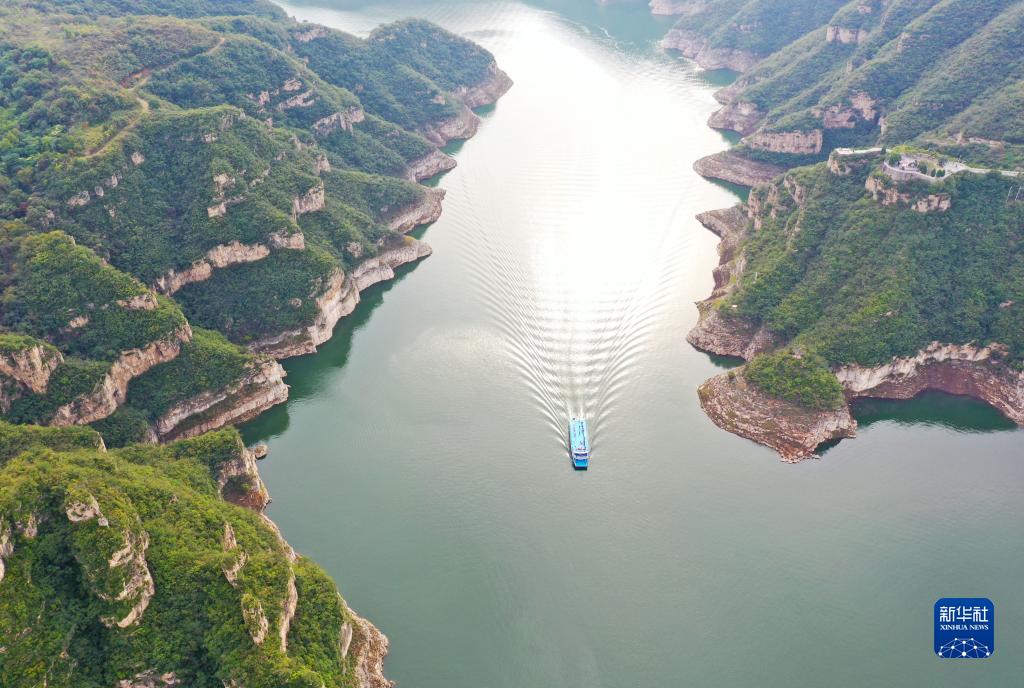 時(shí)值秋日,位于小浪底水利樞紐上游的河南濟源黃河三峽景區,奇峰峻秀,碧波蕩漾,構成一幅秀美壯麗的山水畫(huà)卷。