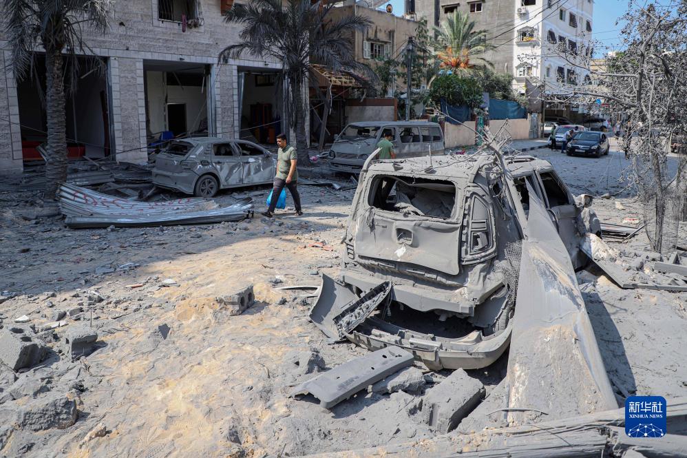 這是10月8日在加沙城拍攝的以色列空襲后被毀壞的車(chē)輛。