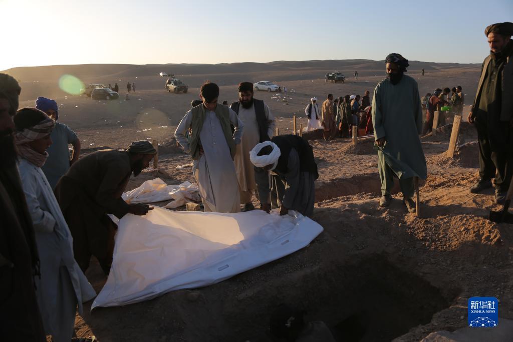 10月9日,在阿富汗西部赫拉特省津達詹區,民眾埋葬地震遇難者。