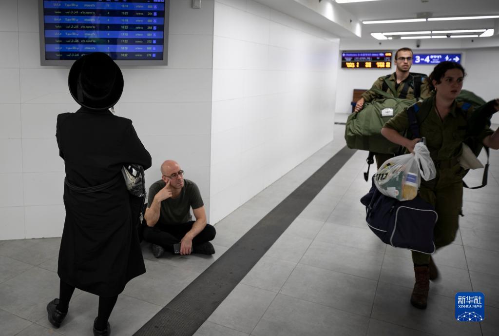 10月9日,在以色列南部城市阿什凱隆火車(chē)站,以軍士兵搭乘列車(chē)抵達。