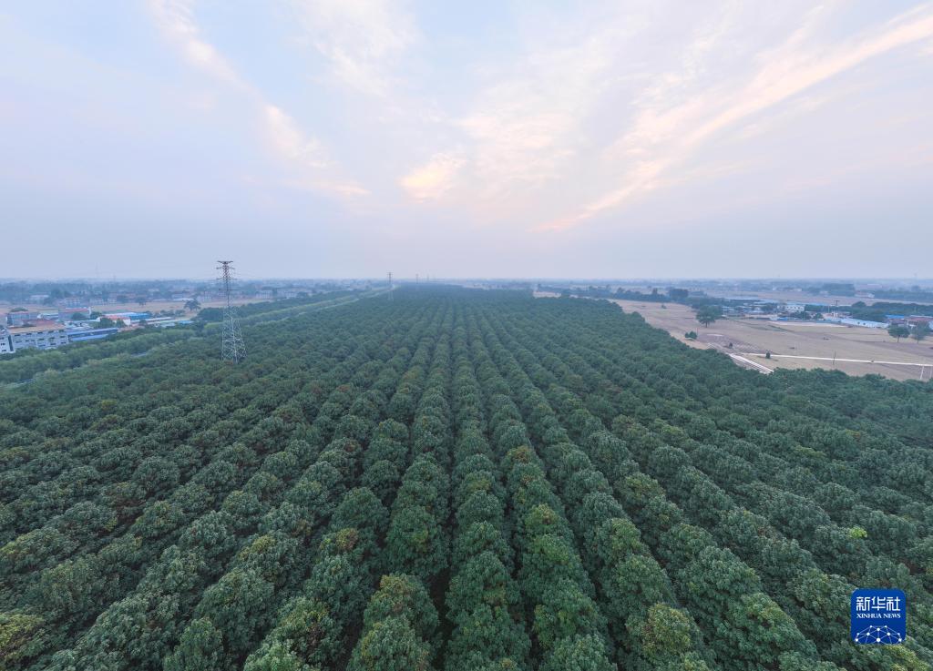 這是10月9日在河南省蘭考縣堌陽(yáng)鎮徐場(chǎng)村拍攝的泡桐林(無(wú)人機照片)。