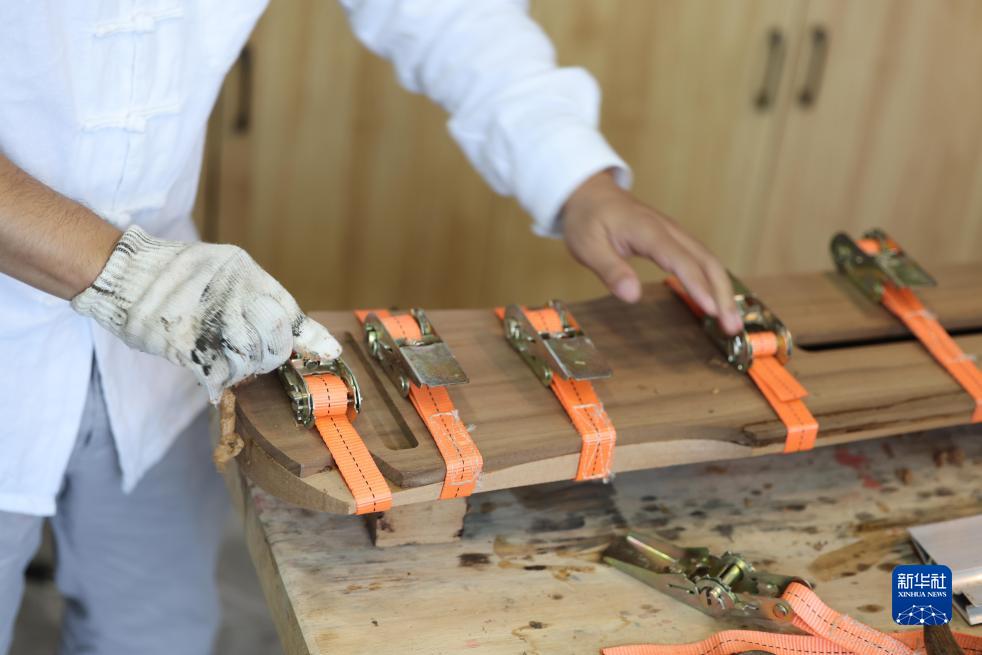10月9日,河南省蘭考縣堌陽(yáng)鎮善斫琴社的斫琴師徐冰在制作古琴。