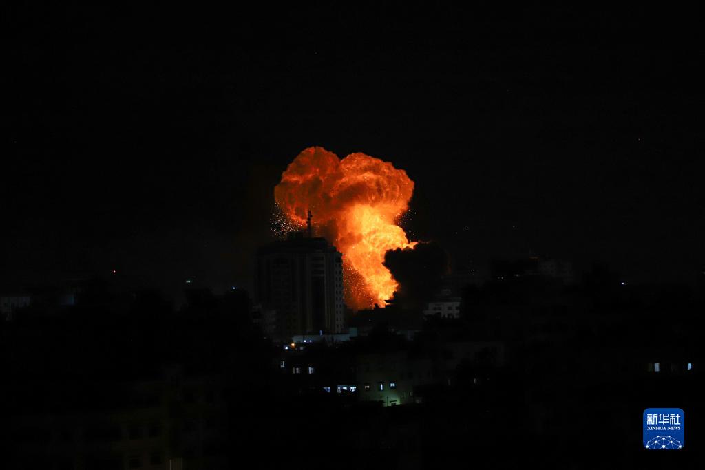 這是10月9日晚在加沙城拍攝的以色列軍隊空襲產(chǎn)生的火光。