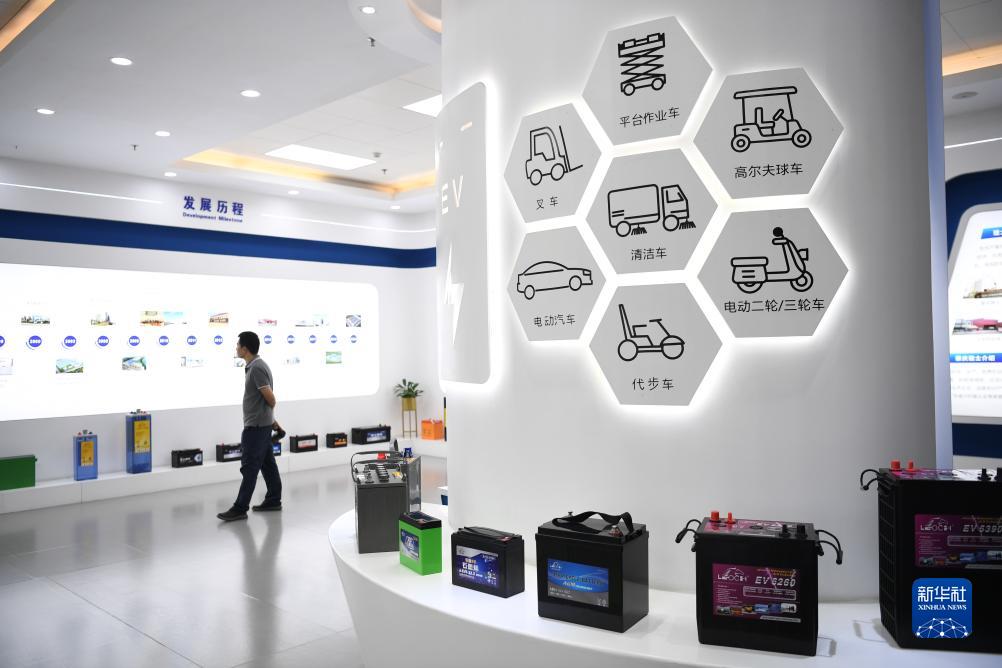 10月9日,參觀(guān)者在廣東肇慶理士電源技術(shù)有限公司觀(guān)看各種類(lèi)型的電池產(chǎn)品。