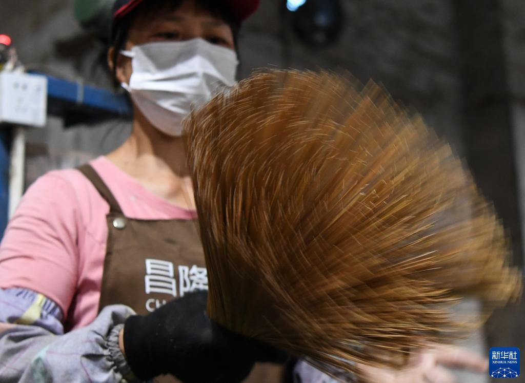 10月9日,在廣東廣寧縣一家竹制品廠(chǎng),工作人員篩選竹子制成的香芯。