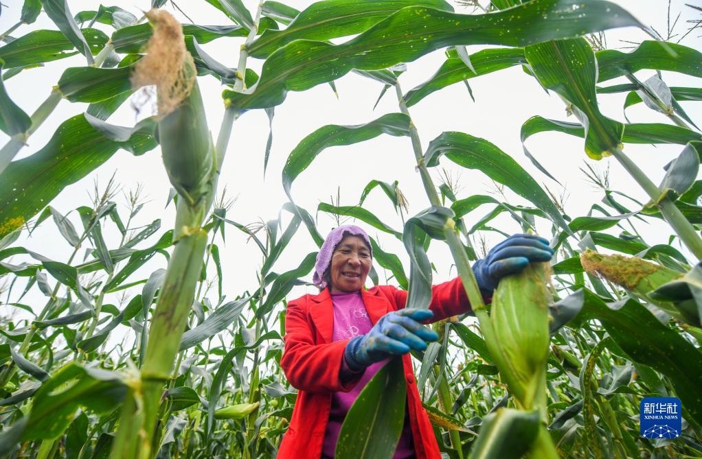 10月10日,在湖南省永州市道縣梅花鎮貴頭村,農民在采收鮮食玉米。