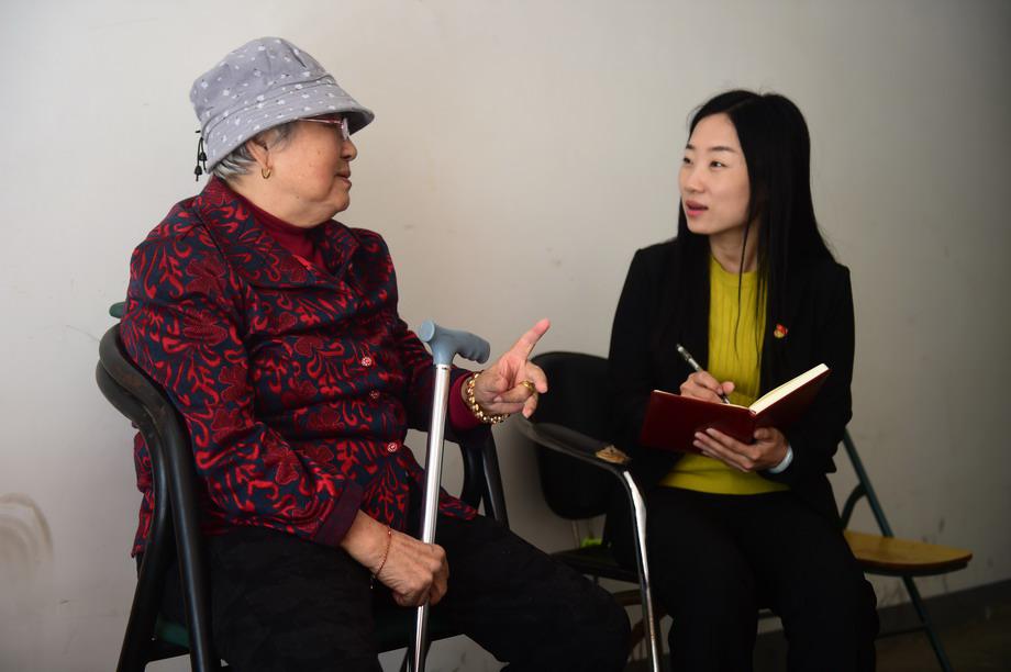 10月10日,滄州市運河區委巡察組工作人員(右)在社區了解群眾訴求。新華網(wǎng)發(fā)(謝辛 攝)