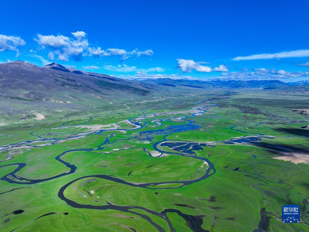 2022年5月31日在四川甘孜藏族自治州理塘縣拍攝的毛埡草原(無(wú)人機照片)。