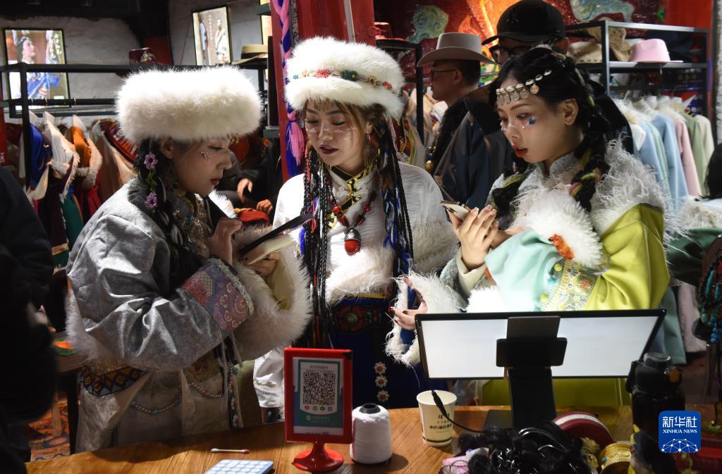 10月10日,在四川甘孜藏族自治州理塘縣,游客體驗藏式服飾。