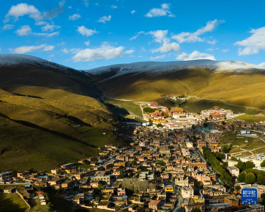 這是10月10日拍攝的四川甘孜藏族自治州理塘縣勒通古鎮千戶(hù)藏寨(無(wú)人機照片)。