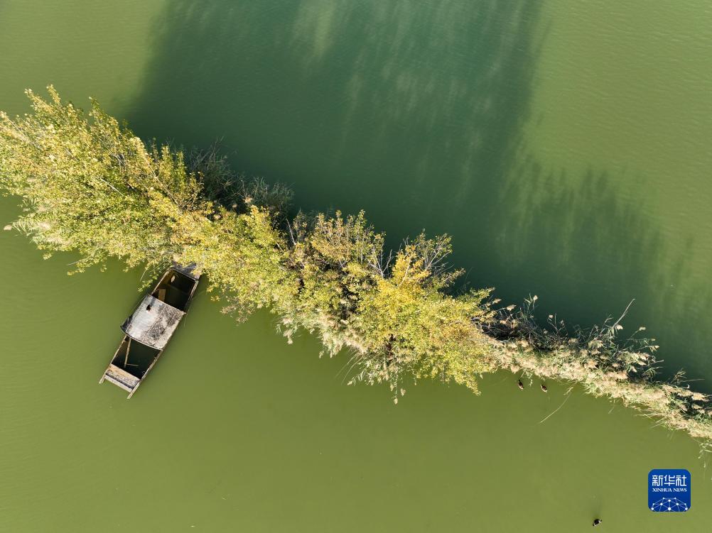 山東聊城位山黃河公園景色(10月10日攝,無(wú)人機照片)。