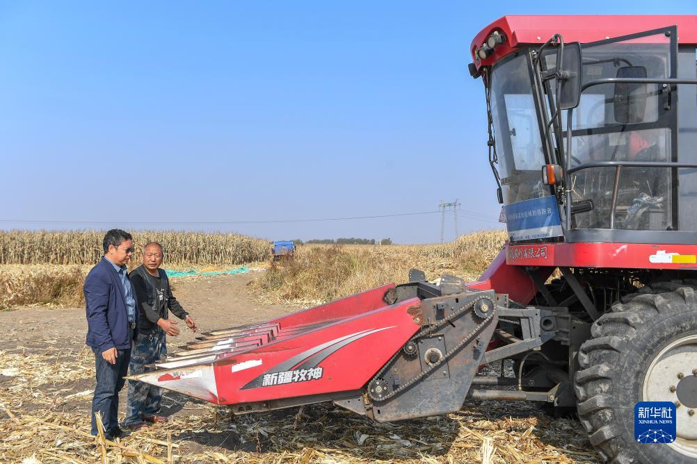 10月11日,在吉林省公主嶺市范家屯鎮孟家村,正高級農藝師邱英楠(左)向農民傳授農機操作方法。