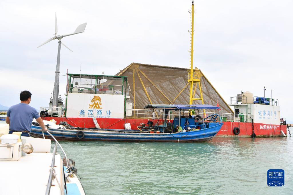 10月10日,游船駛向福建省連江縣定海灣內的“定海灣1號”深遠海養殖平臺。