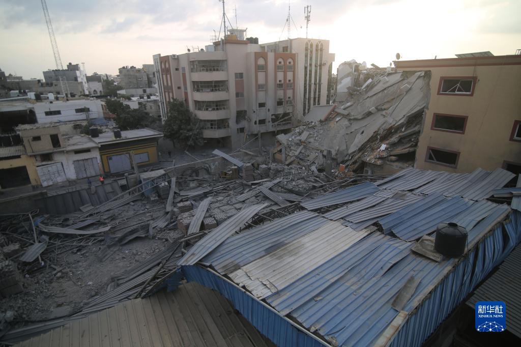 這是10月11日在加沙地帶南部城市拉法拍攝的被以色列空襲炸毀的建筑。