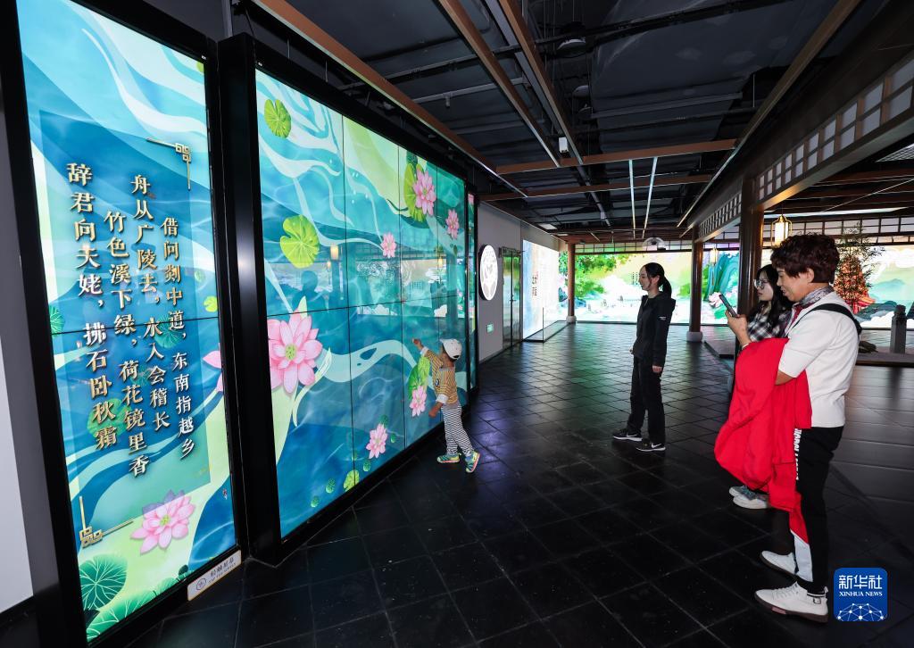 10月11日,游客在大運河數字詩(shī)路e站內觀(guān)看數字化呈現的大運河相關(guān)詩(shī)詞及景色。