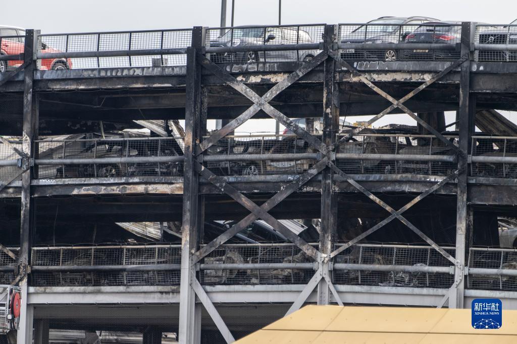 這是10月11日在英國倫敦盧頓機場(chǎng)航站樓拍攝的失火停車(chē)場(chǎng)。