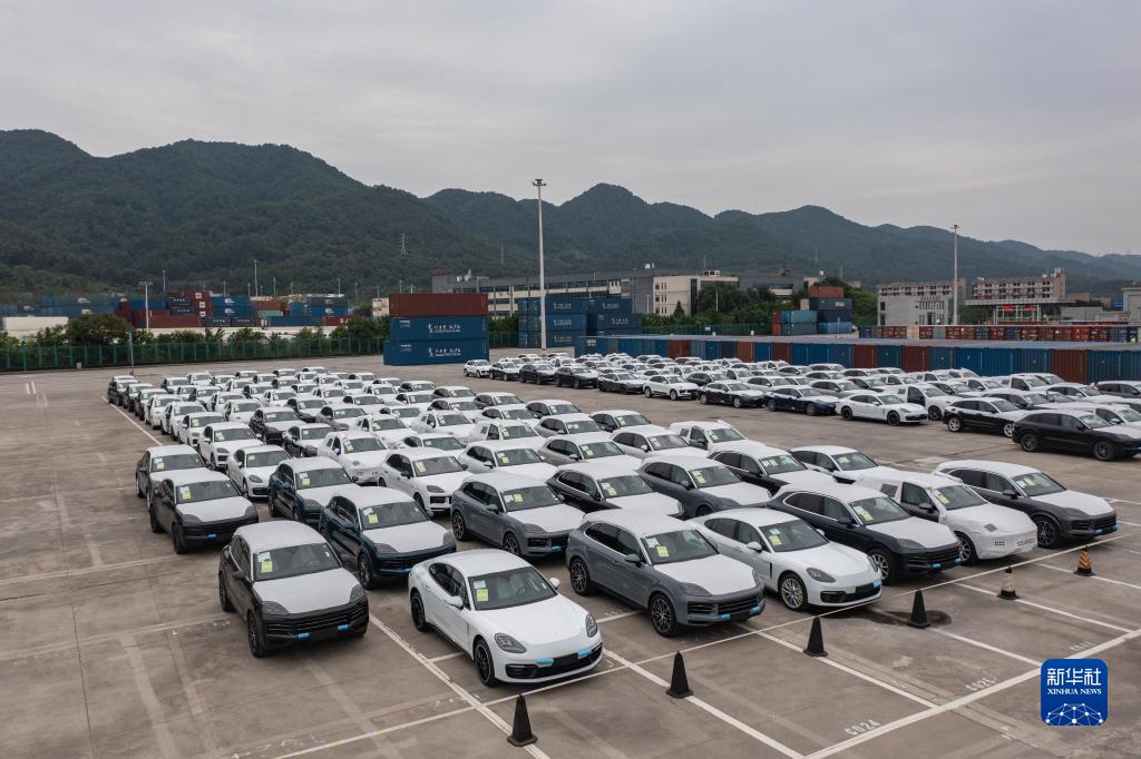 這是10月11日在重慶國際物流樞紐園區拍攝的等待檢測的進(jìn)口整車(chē)(無(wú)人機照片)。