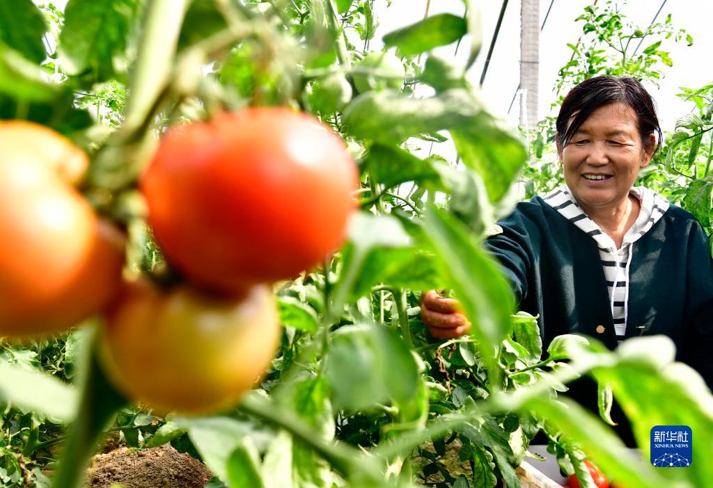 10月11日,村民在山東省惠民縣奧豐瓜菜種植專(zhuān)業(yè)合作社蔬菜大棚采摘西紅柿。