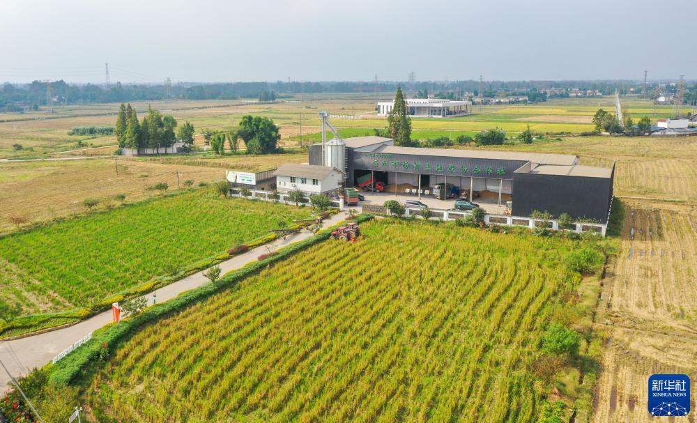 10月10日在成都崇州市隆興鎮拍攝的王伶俐管理的楊柳土地股份合作社(無(wú)人機照片)。