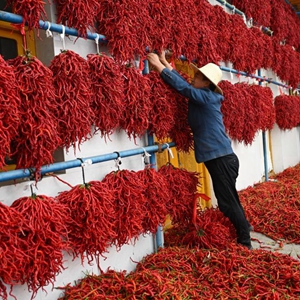 金秋時(shí)節,青海省海東市循化撒拉族自治縣在黃河兩岸種植的萬(wàn)畝線(xiàn)辣椒迎來(lái)豐收,進(jìn)入晾曬季。近年來(lái),循化撒拉族自治縣依托高原地區冷涼氣候和黃河谷地優(yōu)越的地理條件,大力發(fā)展線(xiàn)辣椒特色產(chǎn)業(yè),促進(jìn)農民增收,助力鄉村振興。