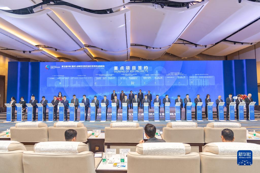 這是2023年4月20日在重慶市第五屆中新(重慶)戰略性互聯(lián)互通示范項目金融峰會(huì )開(kāi)幕式現場(chǎng)拍攝的重點(diǎn)項目簽約儀式。