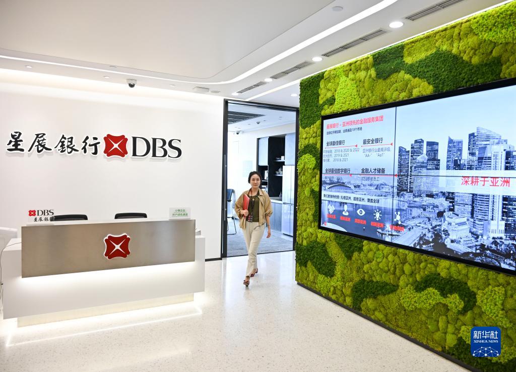 這是2023年9月13日拍攝的位于重慶來(lái)福士的新加坡星展銀行重慶分行內景。在第五屆中新(重慶)戰略性互聯(lián)互通示范項目金融峰會(huì )上,陸海新通道金融服務(wù)聯(lián)合體成立。包括重慶銀行、新加坡星展銀行在內的56家中外金融機構將聯(lián)合推動(dòng)通道沿線(xiàn)國家及地區間的跨境金融合作,促進(jìn)跨境貿易投資及產(chǎn)業(yè)發(fā)展。