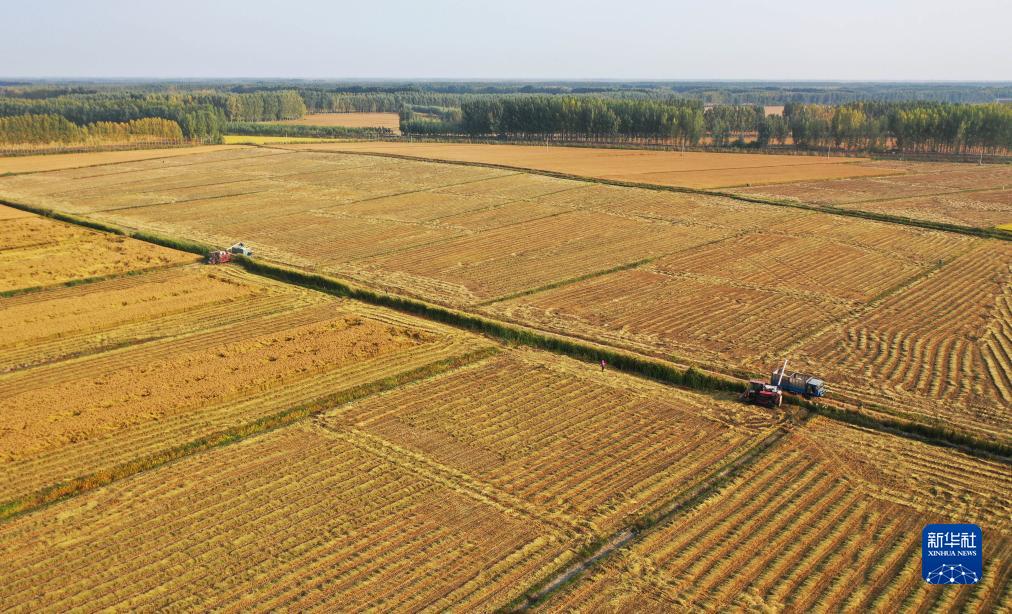 金秋時(shí)節,河北省唐山市的水稻迎來(lái)收獲季節,農民開(kāi)始搶抓農時(shí)適時(shí)收獲,確保顆粒歸倉。