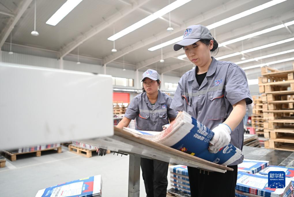 10月12日,河北元氏縣一家新材料生產(chǎn)企業(yè)工人在車(chē)間生產(chǎn)線(xiàn)上工作。