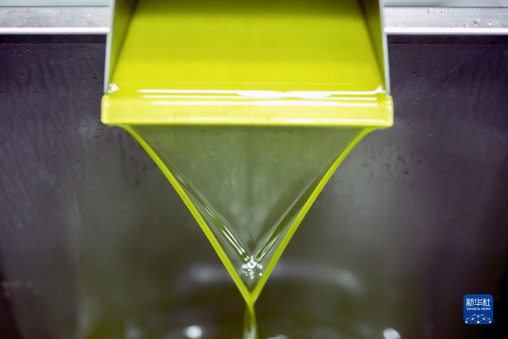 10月11日,在隴南市武都區一家油橄欖加工企業(yè)生產(chǎn)線(xiàn)上,初榨橄欖油從機器流出。