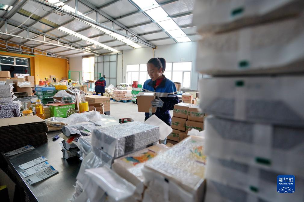 10月12日,河北省沽源縣一家藜麥加工企業(yè)的工人在將藜麥產(chǎn)品打包,準備發(fā)快遞。