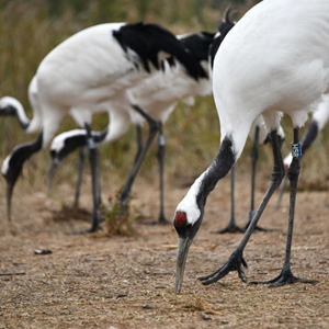 10月12日,一群丹頂鶴在東營(yíng)黃河三角洲濕地飛翔。