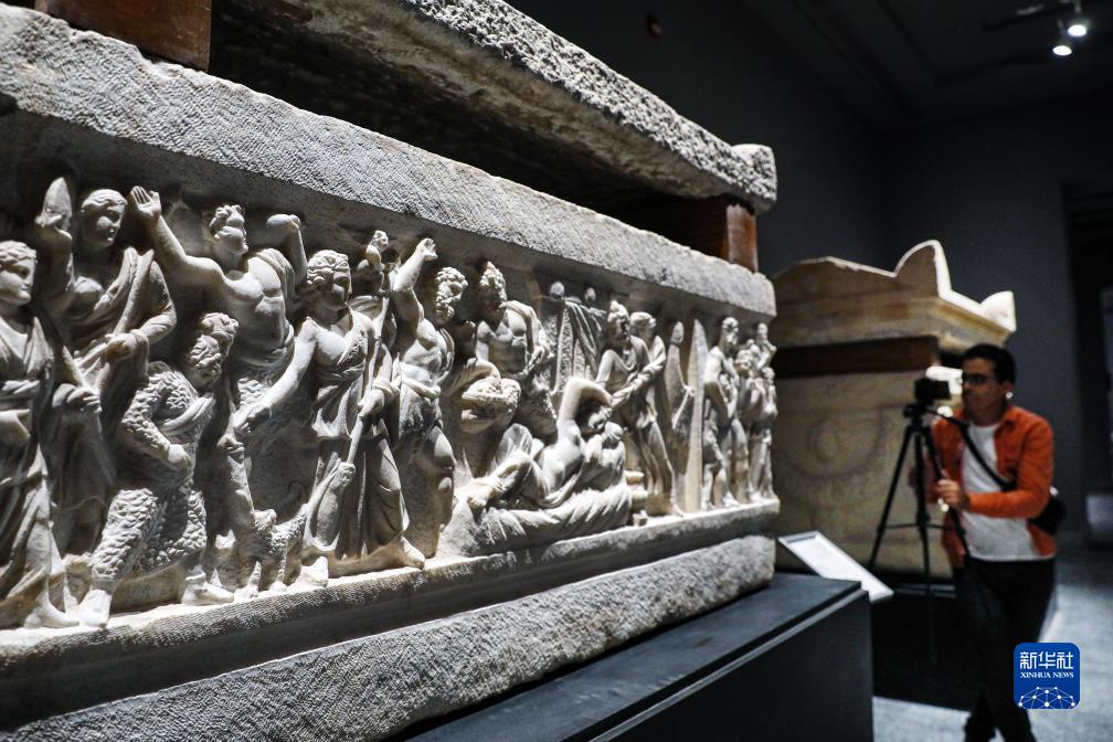 這是10月12日在埃及亞歷山大希臘羅馬博物館拍攝的展出的文物。