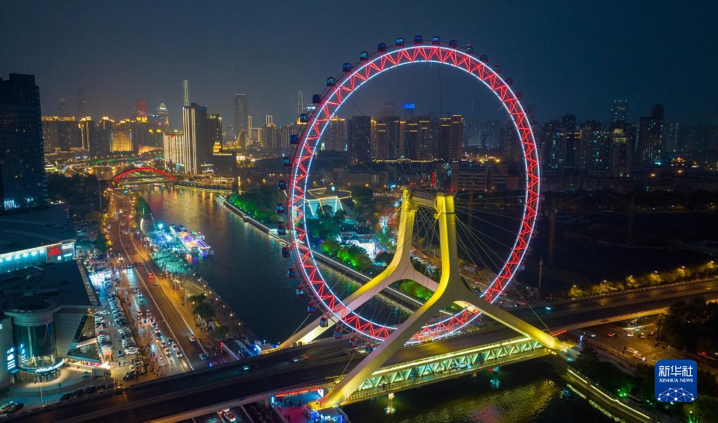 這是4月27日晚拍攝的“天津之眼”摩天輪夜景(無(wú)人機照片)。